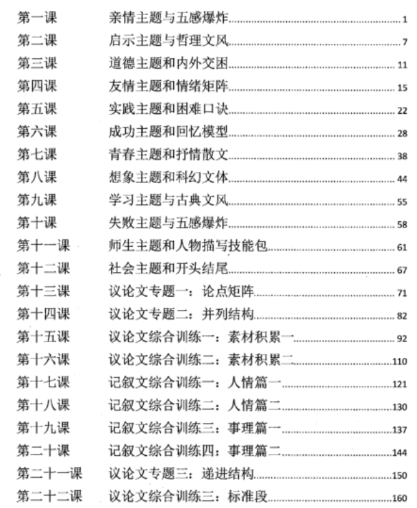 • 教学内容根据全国中考作文命题趋势,将中考作文分成12个主题,72中心,用24次课一网打尽中考记叙文和议论文。