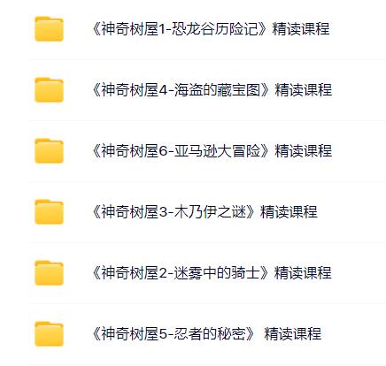 神奇树屋6本精读课程,每本有10个部分,每个部分由视频课程+单词+习题+答案组成,完整分享~~~ 声明:本站资源来自会员发布以及互联网公开收集,不代表本站立场,仅限学习交流使用,请遵循相关法律法规,请在下载后24小时内删除。 如有侵权争议、不妥之处请联系本站删除处理! 请用户仔细辨认内容的真实性,避免上当受骗!