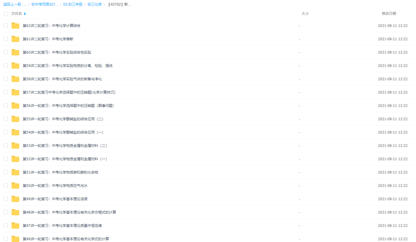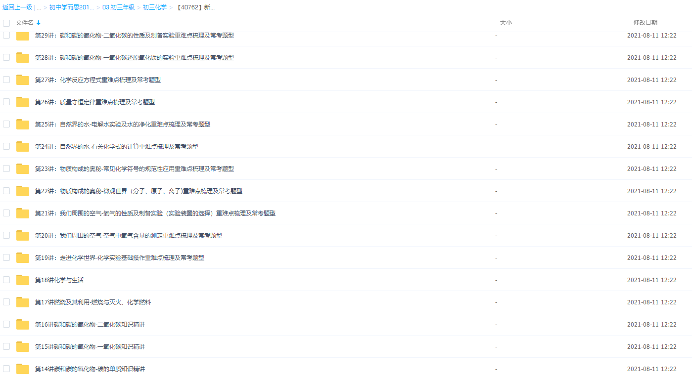 此课件来自学而思网校,【40762】新初三化学年卡尖子班(全国人教版) 【62讲陈谭飞】,包含视频课程和讲义资料 。此课件的主要内容包括: 一轮复习:中考化学基本理论质量守恒定律、一轮复习:中考化学物质空气与水、一轮复习:中考化学基本理论有关化学式的计算、一轮复习:中考化学物质金属和金属材料 等等视频课程