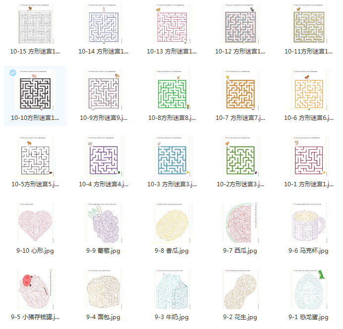 这套迷宫练习册难易程度分得很细致,我按照网站的排列分为了10小册。