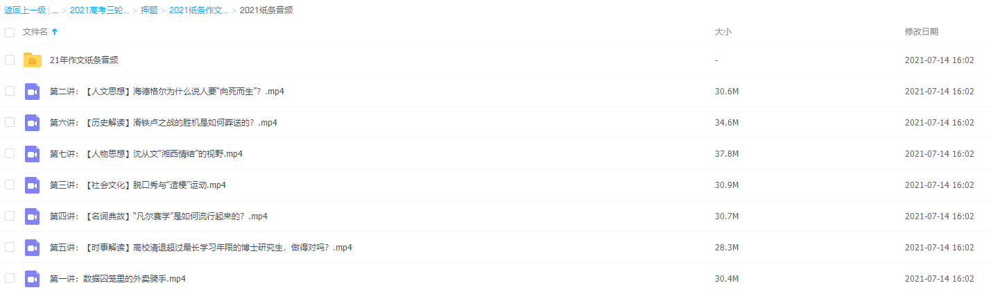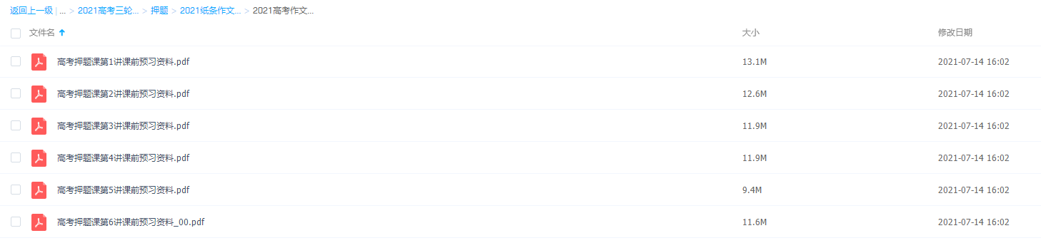 说到高考作文,很多同学都谈之色变。 可能大家会沉浸在如下的话语里: “明明60分的作文,我花了1个小时却只能得个44、45分。甚至可能跑了个题,就30多分,写得再好,上50分,也是难于上青天” 。此课件来自2021高考押题班纸条作文押题视频课课程带讲义,高考作文一定不会跑题的。