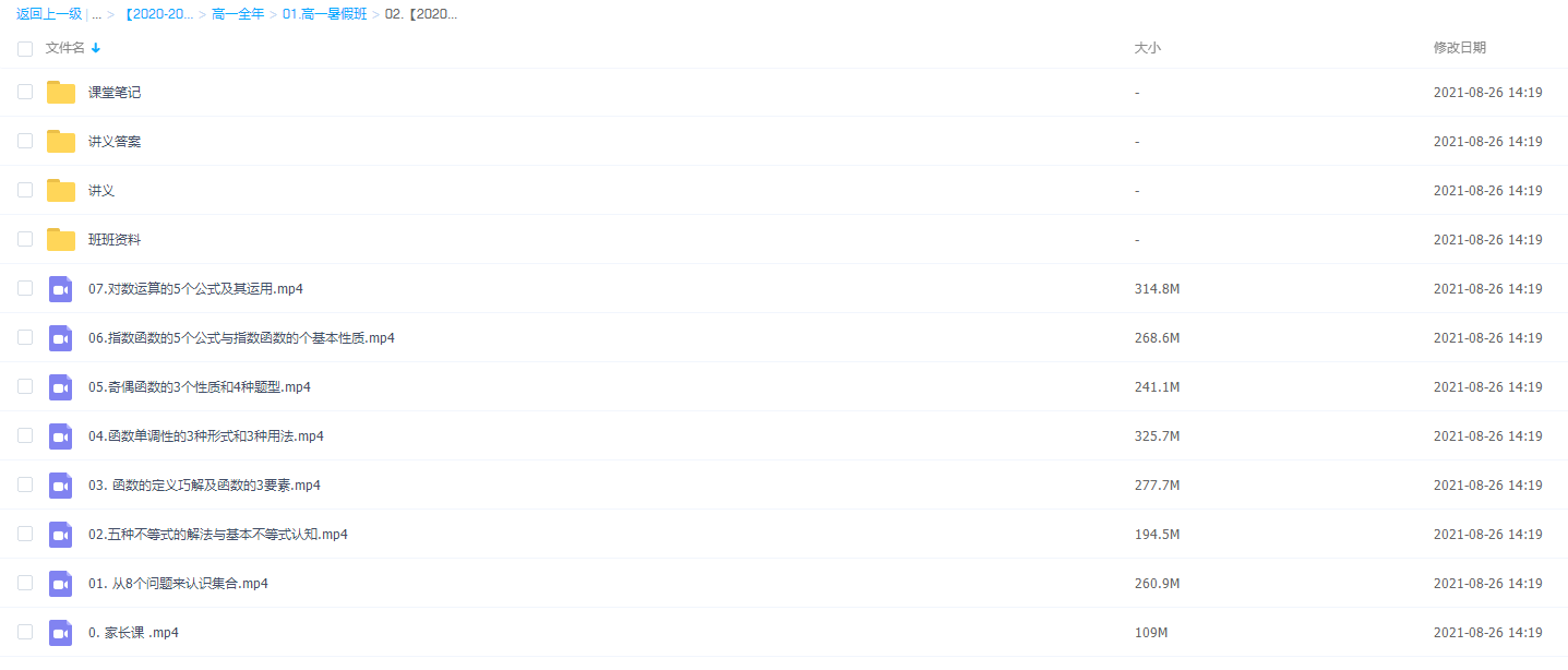 此课件来自作业帮网校,2020刘天麒暑假高一数学尖端班视频,包含视频课程和讲义资料 。主讲刘天麒老师以最大的热情,努力让自己的感染力穿透屏幕,影响更多的孩子。此课件主要知识点包括:五种不等式的解法与基本不等式认知、函数的定义巧解及函数的3要素、函数单调性的3种形式和3种用法、奇偶函数的3个性质和4种题型、指数函数的5个公式与指数函数的个基本性质、.对数运算的5个公式及其运用等视频