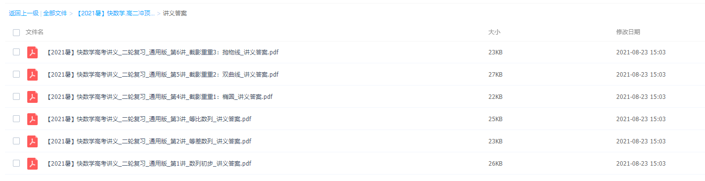 谭梦云作业帮2021暑假高二数学暑假冲顶班(通用版数列和圆锥曲线)