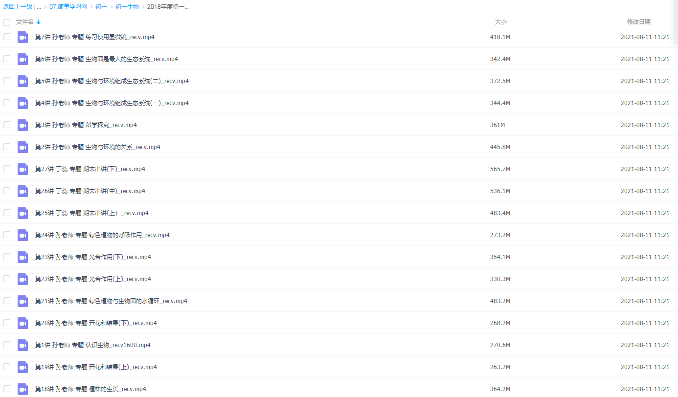 此课件来自简单学习网,简单学习网初一孙老师生物同步提高上下学期课程 。 此课件主要内容包括:生物与环境组成生态系统、绿色植物的呼吸作用、 绿色植物与生物圈的水循环、人的生殖和胚胎发育、输送血液的泵——心脏、人体泌尿系统的组成和结构 等视频