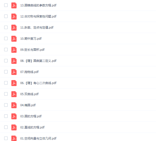 此课件来自作业帮网校,2020年高二数学肖晗(课改)秋季班高清视频。此课件主要知识点包括:空间向量与立体几何、直线的方程、圆的方程、椭圆、双曲线、抛物线、弦长与面积、斜率、定点与定值、非对称与探索性问题、圆锥曲线的参数方程等等视频课程。。。。