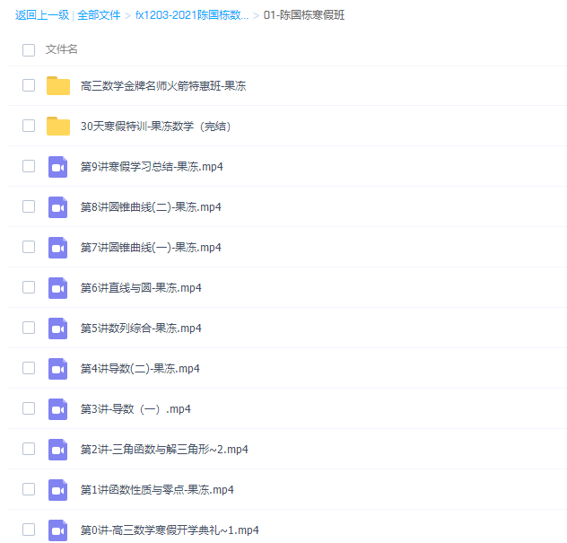 陈国栋数学2021届高考数学二轮复习直播讲解网课视频(寒春联报)