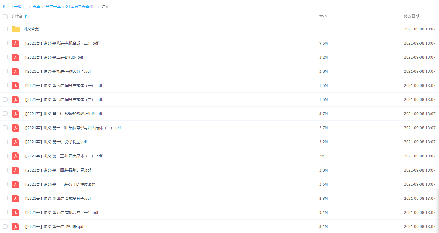 李伟 2023高二化学 S全年复习 暑秋寒春合集 目录:春季班:20.直播[同步...