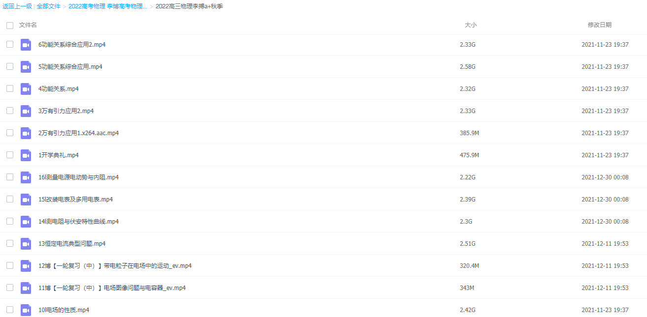 何连伟 2020高考物理一轮复习秋季班目录:├─1.圆周运动.mp4├─10.期...