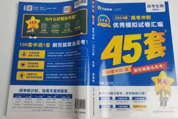 金考卷45套则是模拟试卷类型的教辅资料,主要目的是帮助学生适应高考的考试节奏和题型结构。这45套试卷涵盖了高考生物的所有知识点,难度设置与高考相当,甚至有所超越,能够让学生在高强度的练习中找到自己的弱点并加以改进。每套试卷之后都有详细的解析,不仅包括答案,还有解题思路和技巧的分享。通过反复练习这些模拟试题,学生可以提高自己的答题速度和准确性,增强考场信心。
