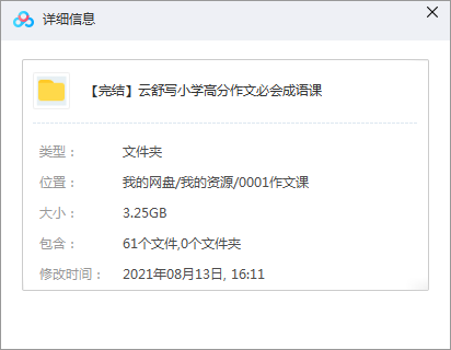 【60完结】云舒写小学高分作文必会成语课 声明:本站资源来自会员发布以及互联网公开收集,不代表本站立场,仅限学习交流使用,请遵循相关法律法规,请在下载后24小时内删除。 如有侵权争议、不妥之处请联系本站删除处理! 请用户仔细辨认内容的真实性,避免上当受骗!