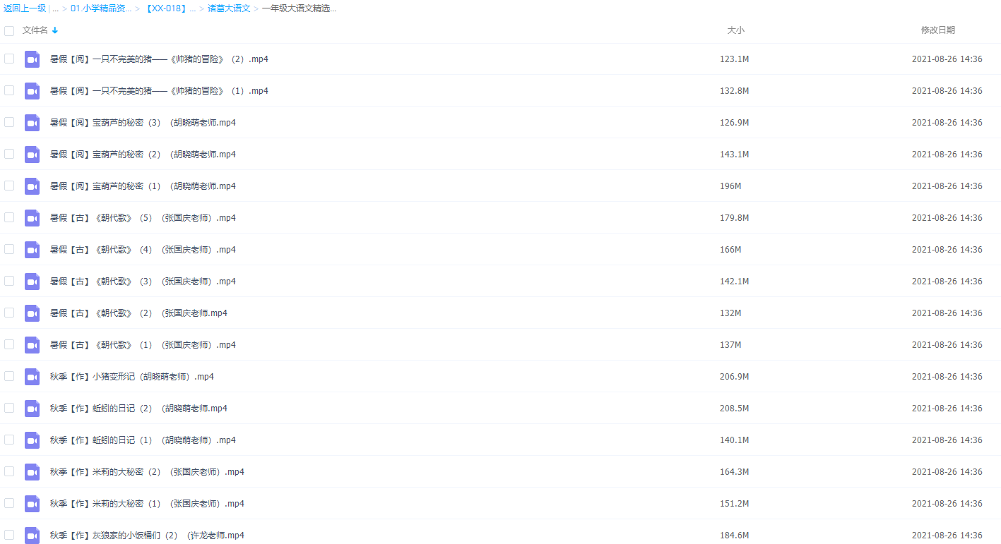 此课件来自诸葛大语文1-6年级小学视频课程全套,主讲老师生动有趣、系统精彩的讲授,帮助学生在轻松中获取知识。此课件主要知识点包括;暑假【阅】宝葫芦的秘密、暑假【阅】一只不完美的猪——《帅猪的冒险》、暑假【古】《朝代歌》、秋季【作】小猪变形记 等视频。