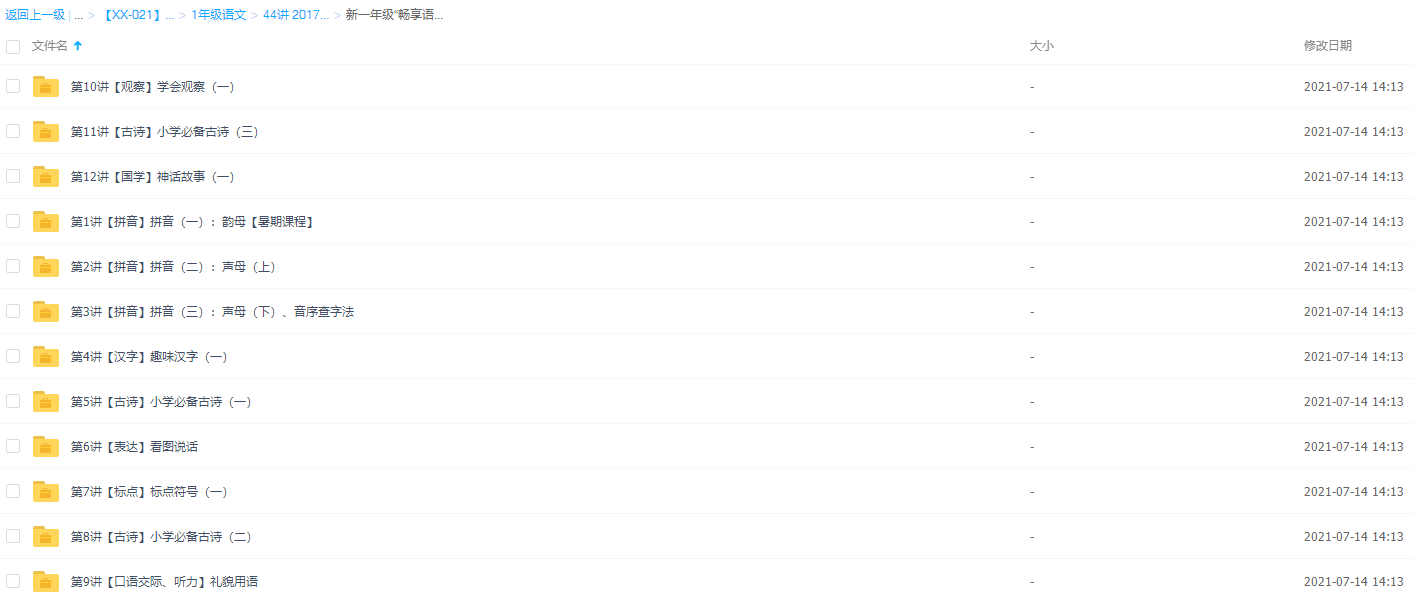 此课件来自学而思网校,小学一年级杨惠涵“畅享语文”成长计划年卡全套视频,包含初夏秋冬四级课程,共44讲。此课件帮助学生轻松掌握汉语拼音的读法、写法及用法,学会观察、会做观察记录、并能根据观察记录写小作文。