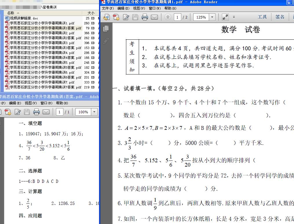 小升初套卷集训清晰试卷方便打印+单独答案快速订正