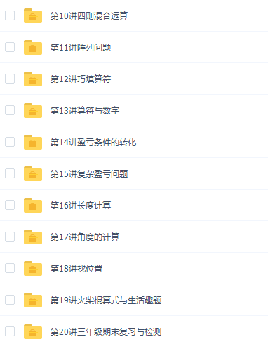 此课件来自高思网校小学数学三年级竞赛数学同步课程下册20讲,此课件主要知识点包括:乘除法巧算、枚举法中的字典排列、移多补少与等量换、寻找隐私周期、植树问题…等等。此课件在形式上是非常精美的。图书是全彩印刷,所用的纸张质量非常好。我们为书中的主人公们绘制了人物形象,并赋予了鲜明的性格特征。在每一讲的开始部分,都绘制了精美的漫画,知识内容在漫画故事的开展中进行讲解,图文并茂,更具亲和力,对于提高学习兴趣会有很大帮助。