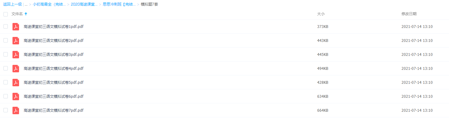 高途思思冲刺班-初三语文中考模拟题7套电子课本资料大全