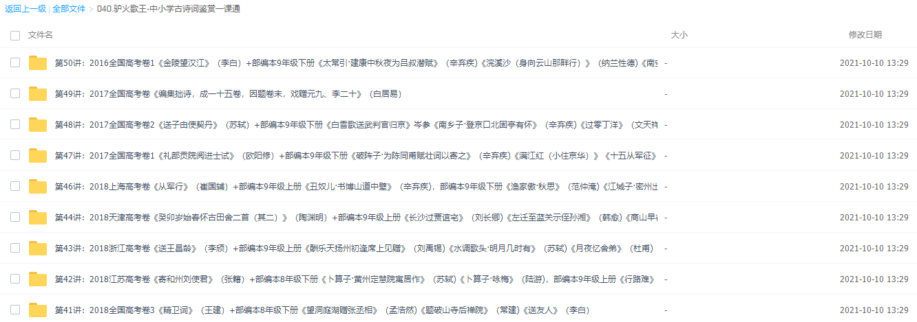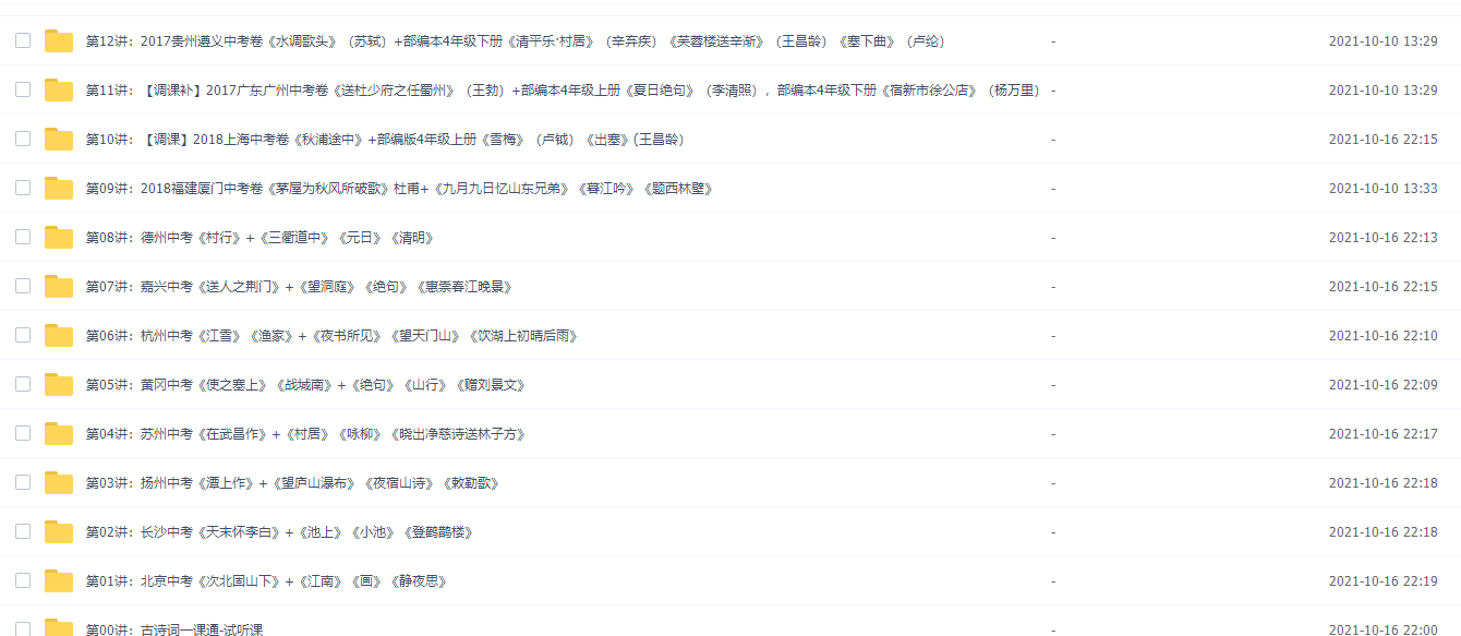此课件来自诸葛大语文,驴火歌王中小学语文考前必备中小学古诗词鉴赏技巧50讲。此课件解决的就是同学们常遇到的古诗词读不懂,不会赏析,鉴赏题丢分的问题。邵老师在这门课里讲了四十多个常用、常考的鉴赏技巧,还通过生活中的案例、歌词、历年考试的真题举例分析,帮助你更好地理解、掌握、运用这些技巧。