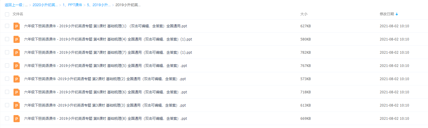 2019小升初英语专题基础梳理(含答案)全国通用等8个文件,提前学习有多重要你知道吗?初中的学习方法和氛围也不一样了!
